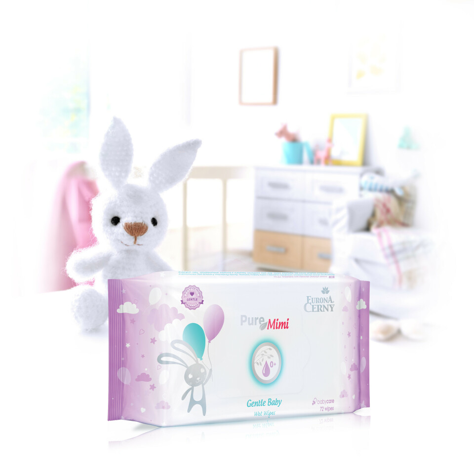 - Vlhčené přírodním tělovým mlékem pro něžnou a šetrnou péči o pokožku Vašeho děťátka.